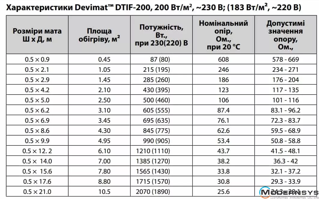 Технічні характеристики: Нагрівальний мат DEVI (Деви)mat DTIF-200 8,8м2 1570Вт