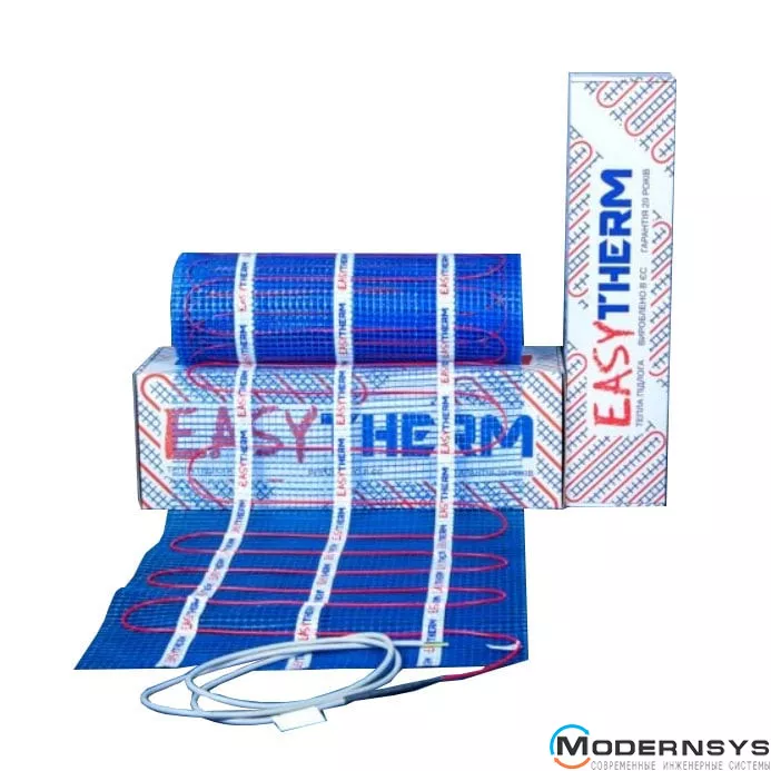 Мат Easytherm є секцією тонкого нагрівального кабелю, який закріплений на скловолоконній сітці в петлеподібній конфігурації, і з приєднаним проводом живлення. Призначений мат для укладання під плитку в шар розчину, що клеїть. За рахунок близького розташування до поверхні він швидко прогріває покриття для підлоги. Може застосовуватися як для основного опалення, так і для підігріву підлоги до комфортної температури.