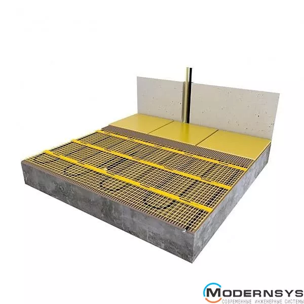 В комплект входить тонкий безпечний нагрівальний кабель у вигляді готового килимка. Двожильний нагрівальний кабель, потужністю 150 Вт\м², укладений на капроновій сітці з основою, що самоклеїться. Нагрівальний мат має ширину 50 см і довжину від 2 до 20 метрів, монтується в тонкий шар (± 5 мм) плиткового клею або наливної підлоги, що самовирівнюється. Детальна інструкція з монтажу та експлуатації знаходиться у кожному комплекті підлоги.
