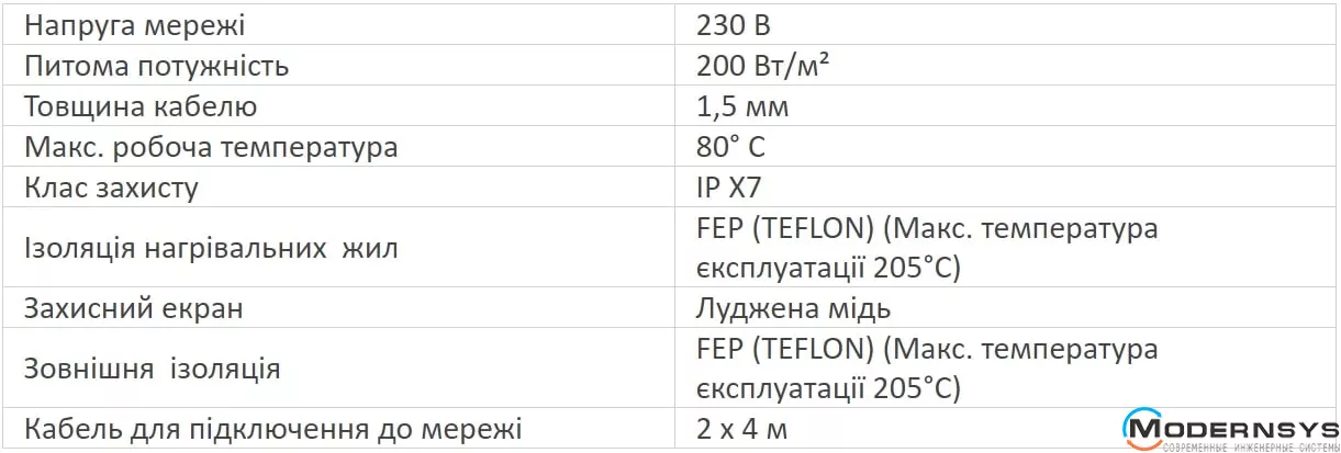 Технічні характеристики: Нагрівальний мат одножильний Extherm (Екстерм) ETL 600-200