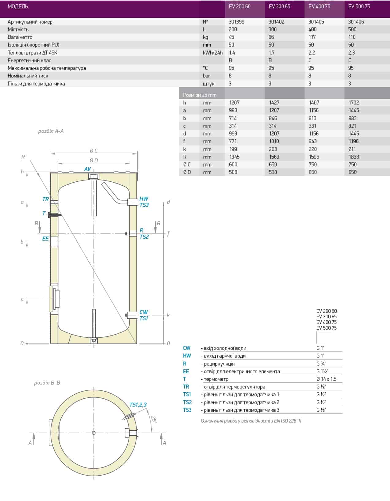 Технічні характеристики: Накопичувальний водонагрівач Tesy (Теси) 200 л. - EV 200 60 F40 TP3