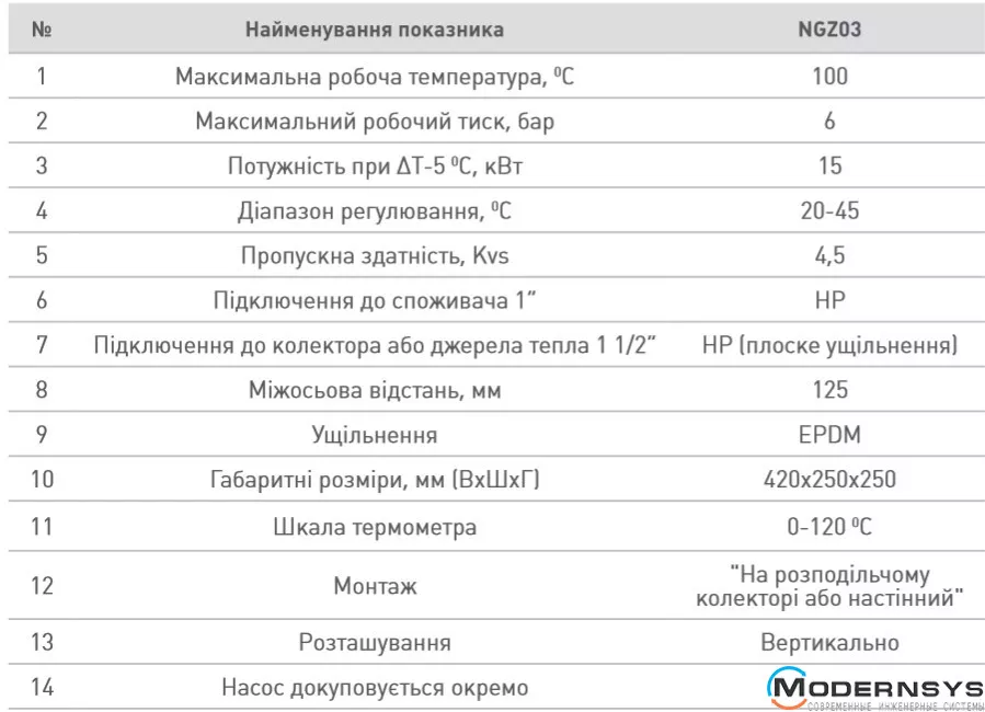 Технічні характеристики: Насосна група FADO (Фадо) із термостатичним краном 1”