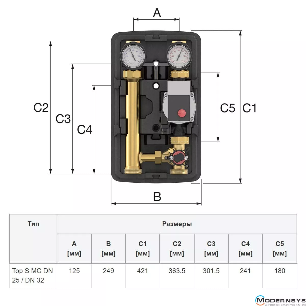 Технічні характеристики: Насосна група Meibes (Майбес) MeiFlow Top S MC DN32 змішує з насосом Wilo Stratos PICO Plus 32/1-6 9