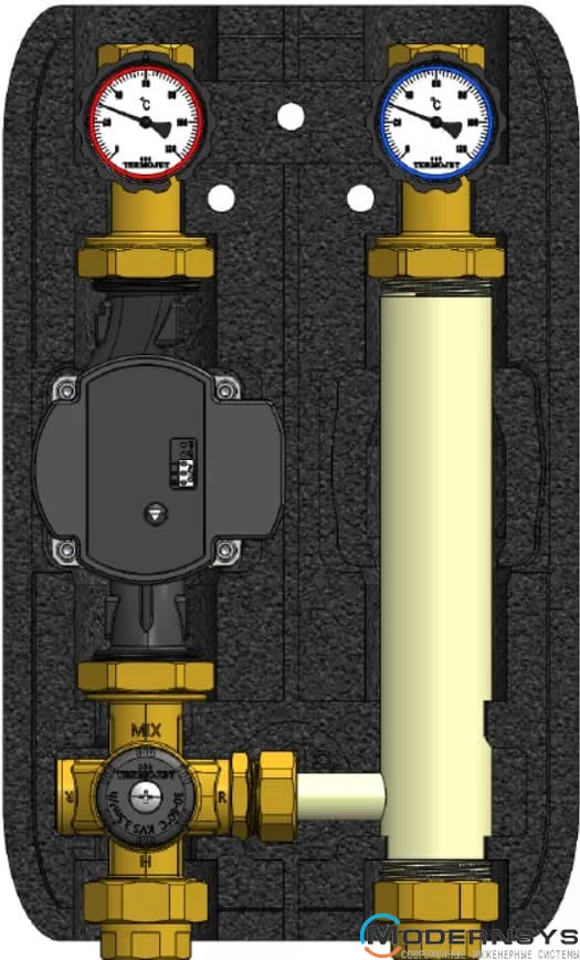 Технічні характеристики: Насосна група Termojet (Термоджет) з термокраном 25-55 С 1" ВР у EPP BLACK теплоізоляції без насоса НГ – 46л