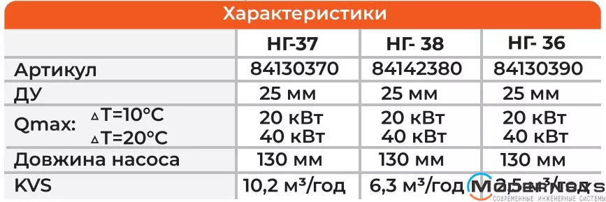 Насосна група НГ-37 без вузла, що змішує, використовується для контурів, що не вимагають управління температурою теплоносія. Міжосьова відстань – 100 мм.