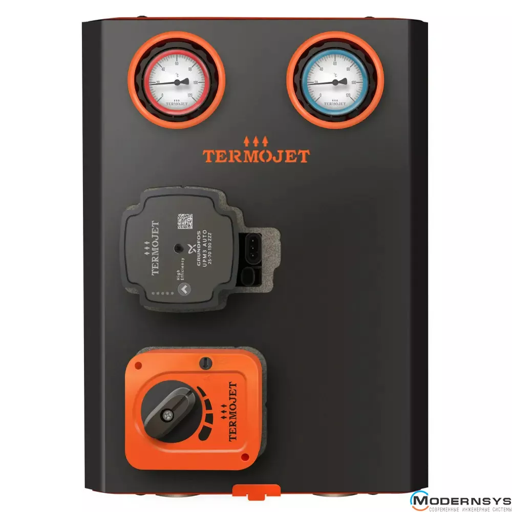 Termojet НГ-48Л зі змішувальним вузлом. Застосовується з опалювальними контурами, які потребують регулювання температури теплоносія за наявності автоматики керування котельні, наприклад, для контуру опалення радіаторами або теплою підлогою. Підходить для насосів, що мають монтажну довжину 130 мм (насос не входить до комплекту).
