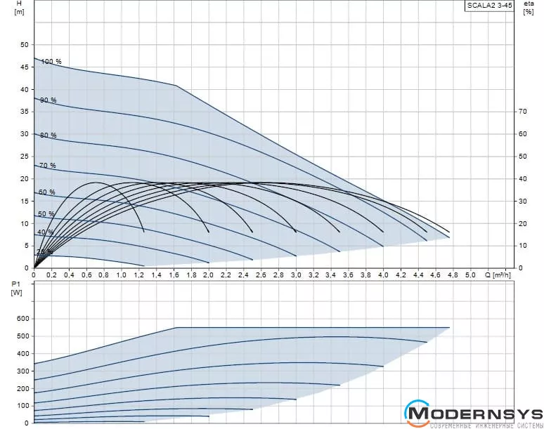 Вибираючи SCALA2, споживання енергії можна зменшити до 40%, замінивши стару водопровідну станцію. Така ефективність досягається завдяки регулюванню швидкості двигуна в режимі реального часу, мінімізації циклічності та зниженню споживання енергії при низькому попиті.
