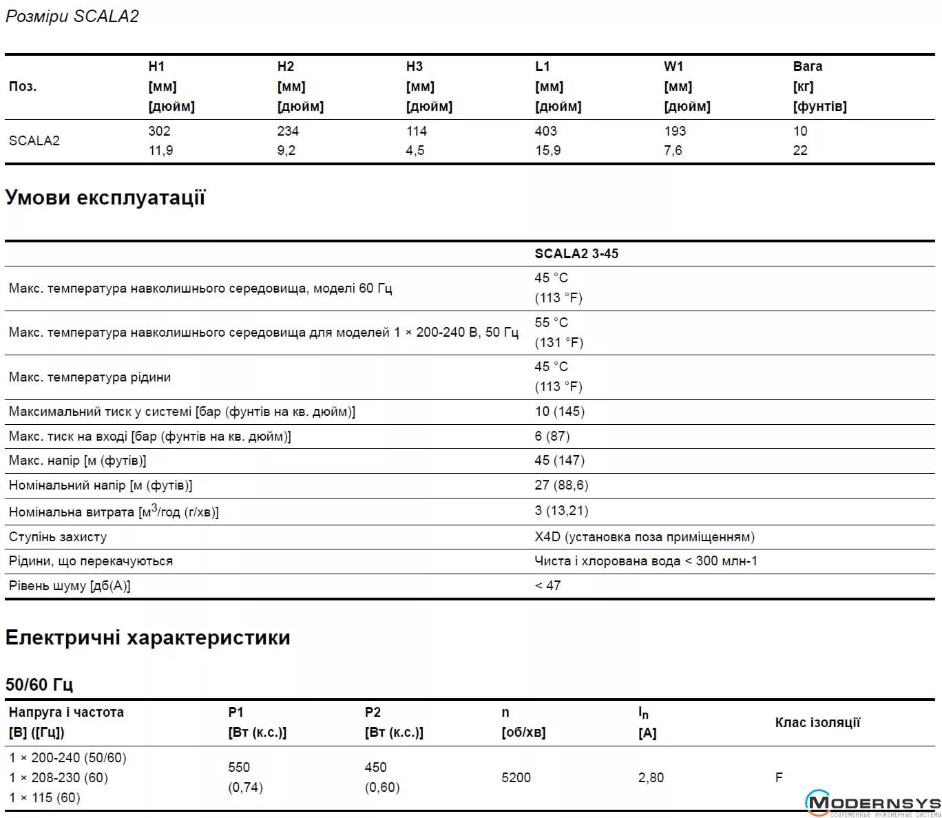 Технічні характеристики: Насосна станція Grundfos (Грундфос) Scala 2 оновлена версія