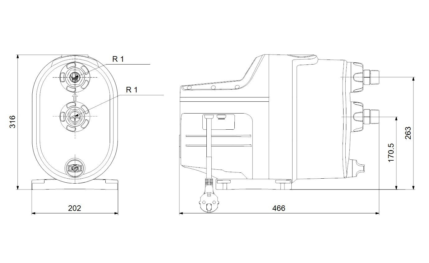SCALA1 - це повністю укомплектована самовсмоктувальна насосна установка, що включає мембранний бак, реле тиску і реле протоки, зворотний клапан на нагнітанні, кабель зі штекером, вбудований цифровий вхід.