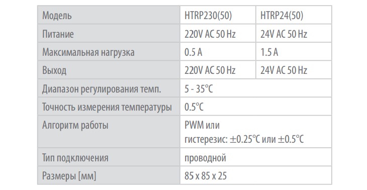 - терморегулятор HTRP24(50) працює тільки з центром комутації KL06 24V