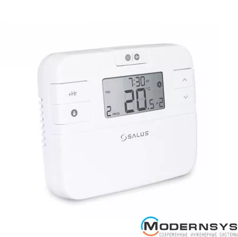 Тижневий програматор Salus RT510 – це електронний дротовий програмований терморегулятор з РК-дисплеєм та незалежним живленням від батарейок. Терморегулятор має на виході "сухі" контакти реле, тому спектр його застосування дуже великий – від електрообігрівачів до газових опалювальних казанів. Крім стандартної підтримки необхідної температури в приміщенні, він оснащений функцією таймера. Таймер дає можливість програмування часу роботи системи опалення та температури у той чи інший діапазон часу. Програматор оснащений режимами програмування температури у тижневому циклі 5+2 чи 7 днів.