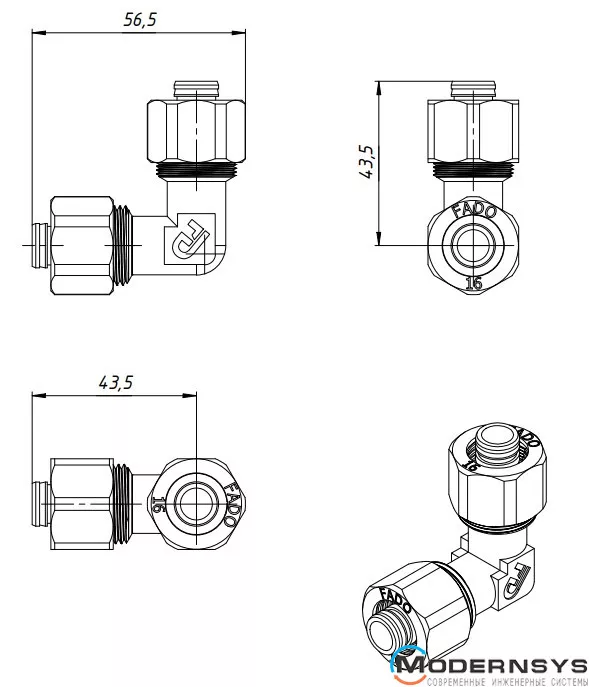 Кутник затискний з'єднувальний FADO являє собою розбірну конструкцію, що полегшує процес монтажу та демонтажу, що дозволяє з легкістю замінювати елементи трубопроводу за потреби.