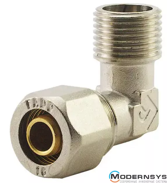 Технічні характеристики: Обтиск куточок з переходом на зовнішнє різьблення FADO (Фадо) COMPRESS 26х1''