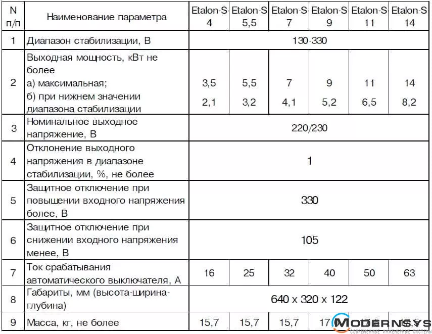 Технічні характеристики: Однофазний стабілізатор Volter (Вольтер) Etalon-S-5
