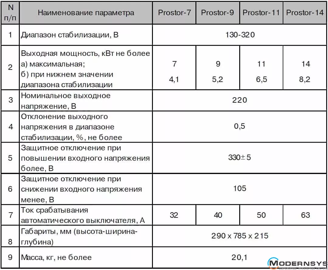 Технічні характеристики: Однофазний стабілізатор Volter (Вольтер) Prostor-9