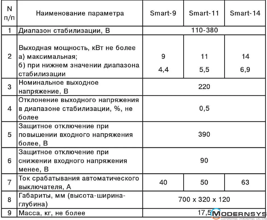 Технічні характеристики: Однофазний стабілізатор Volter (Вольтер) Smart-9