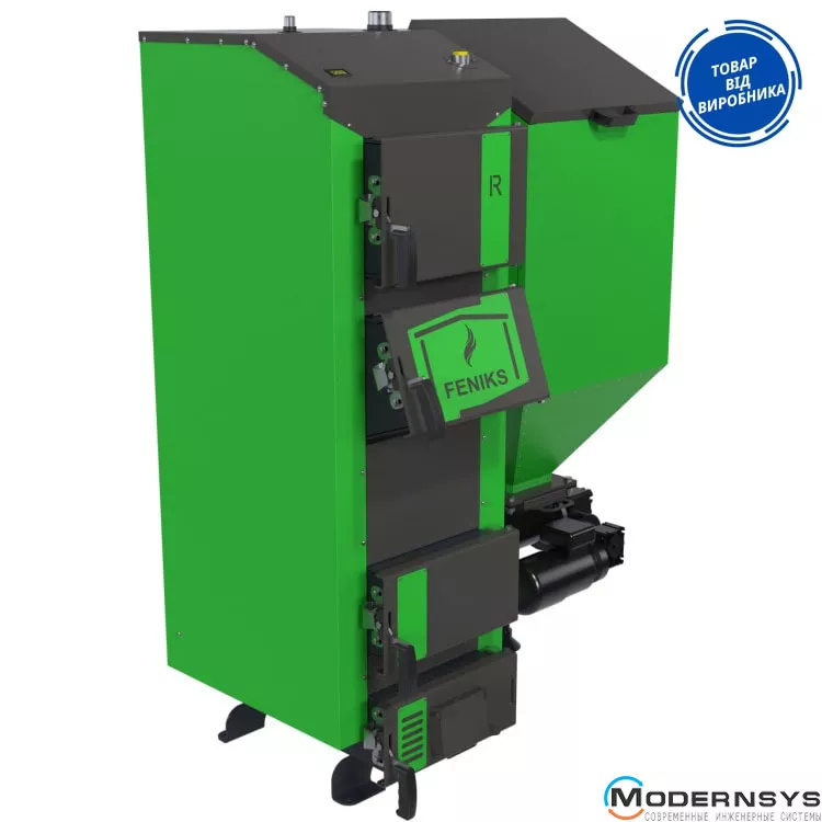 Feniks серія R plus – сучасні твердопаливні пелетні котли, потужністю від 15 до 95 кВт, розраховані для опалення приватних будинків та виробничих приміщень. Пелетні котли – єдине опалювальне обладнання на твердому паливі, здатне забезпечити повну автономну та тривалу роботу системи без участі людини. Казани Фенікс виготовлені тільки з якісних складових (марка сталі, пальник, контролер), протестовані на заводі, гарантія складає 3 роки.