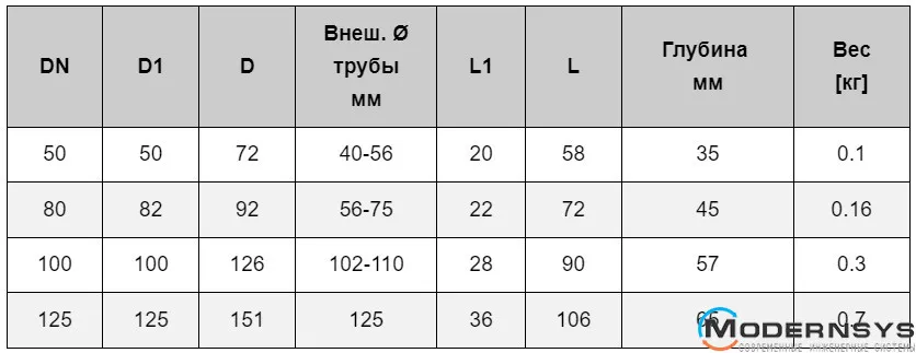 Назва товару КОД Діаметр (мм) Ціна Перехід Konfix 100 000050086643 грн Перехід Konfix 50 000050084306 грн Перехід Konfix 80 000050108484 грн Перехід Konfix 125 0000500881 443 грн
