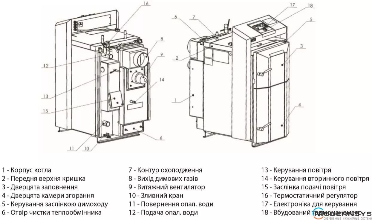 Проста та багаторічно перевірена конструкція цих котлів забезпечує мінімальні вимоги до настановного простору, високу надійність, низьку витрату палива, невибагливе обслуговування, тривалий термін служби та, що не менш важливо, задоволеність замовника. При виготовленні котела використовується якісна котельна сталь товщиною 6 мм.