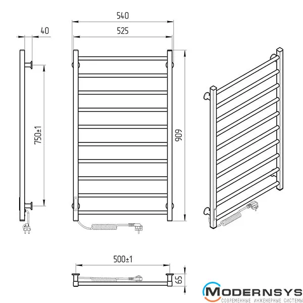 Технічні характеристики: Сушка для рушників електрична Laris (Ларис) Альфа ЧФ(Ч) 10 500 х 900 ліве підключення R3