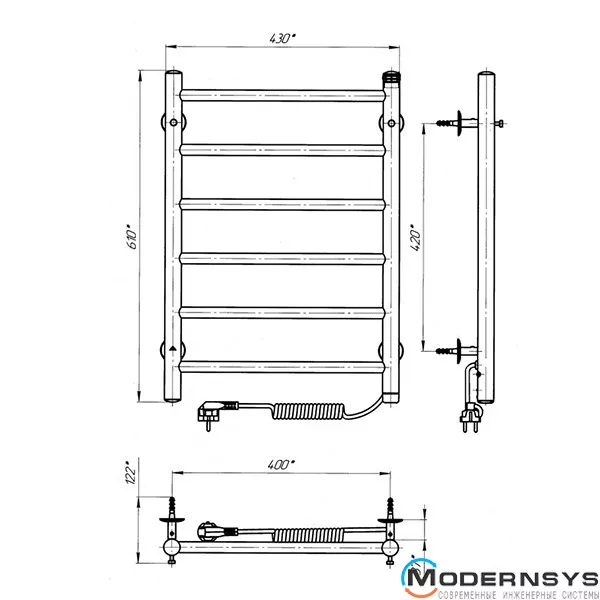 Технічні характеристики: Сушка для рушників електричний Laris (Ларис) Альфа П6 400 х 600 праве підключення S3
