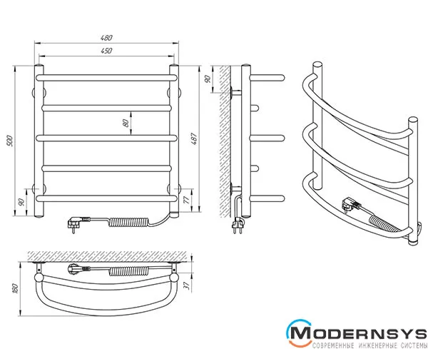 Технічні характеристики: Сушка для рушників електричний Laris (Ларис) Євромікс П5 450 х 500 праве підключення S3