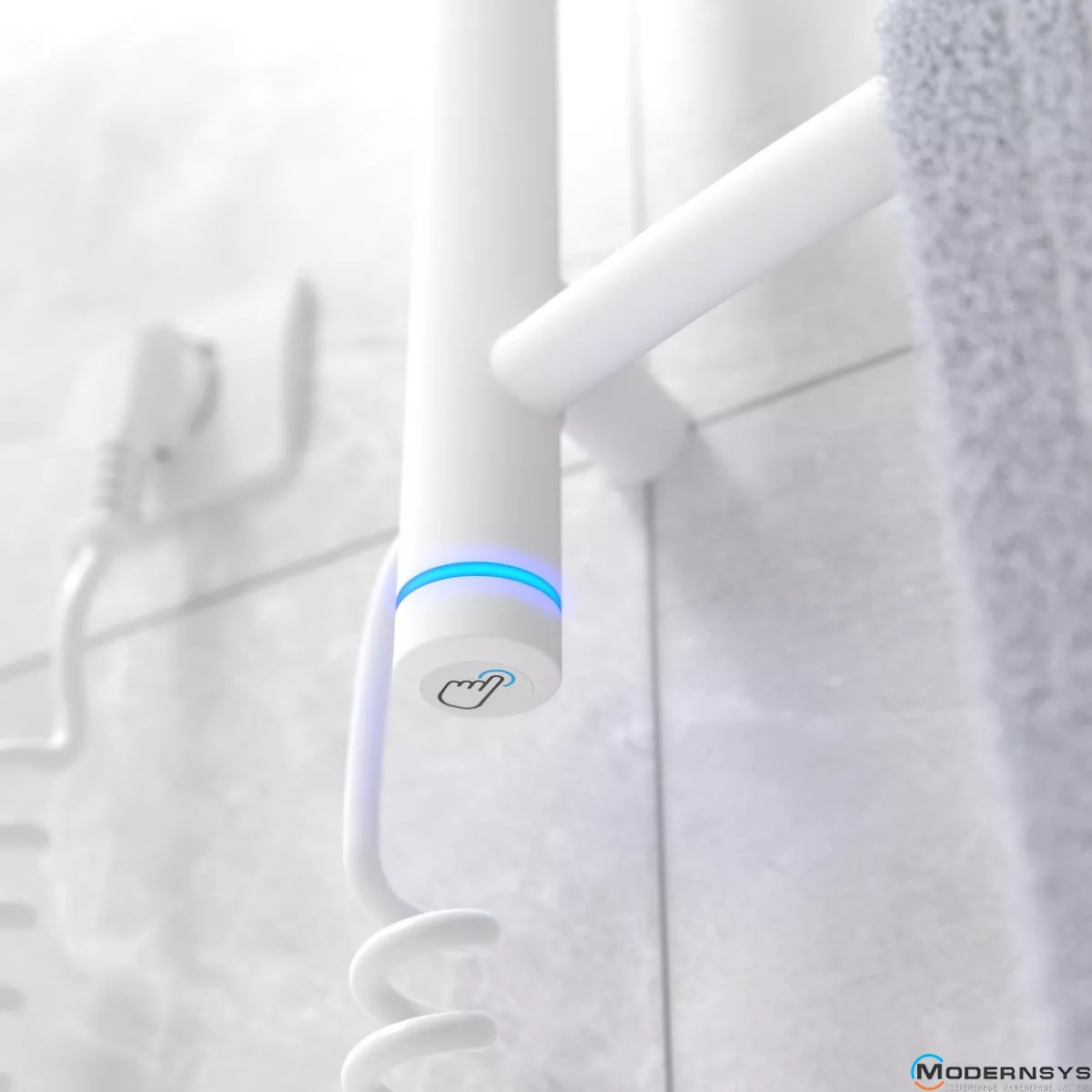 Сушка для рушників оснащена сенсорним регулятором температури з різнобарвним підсвічуванням. При включенні приладу в мережу загориться і згасне підсвічування синього кольору, це означає, що регулятор справний. Передбачено чотири режими роботи – 40, 60, 80 та 100% потужності, кожному відповідає своя світлова індикація. Щоб змінити режим, необхідно короткочасним торканням (менше 2 секунд) доторкнутися до сенсора, кожен наступний дотик буде призводити до зміни режиму: один за одним по колу.