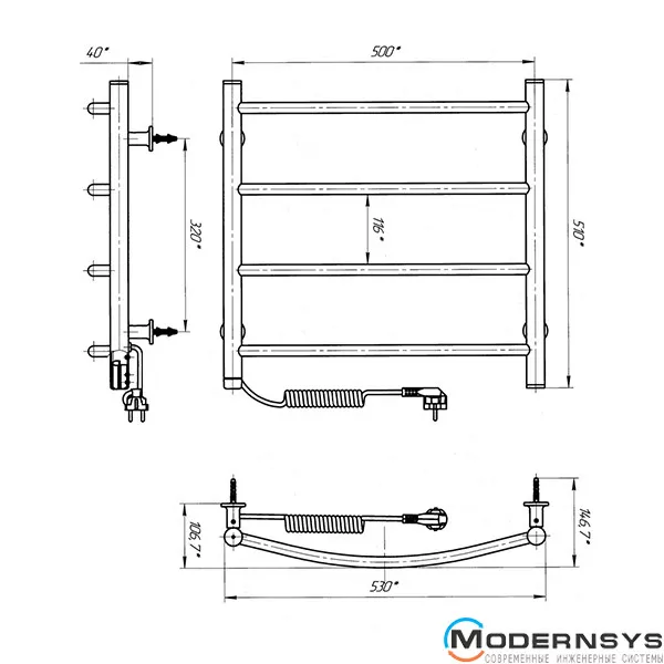 Технічні характеристики: Сушка для рушників електричний Laris (Ларис) Класик ЧФ 4 500 х 500 ліве підключення S3