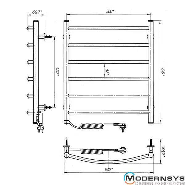 Технічні характеристики: Сушки для рушників електричний Laris (Ларис) Класик ЧФ 6 500 х 600 ліве підключення S3