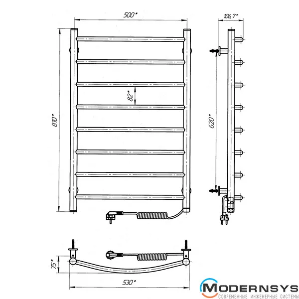 Технічні характеристики: Сушка для рушників електричний Laris (Ларис) Класик ЧФ 8 500 х 800 праве підключення S3