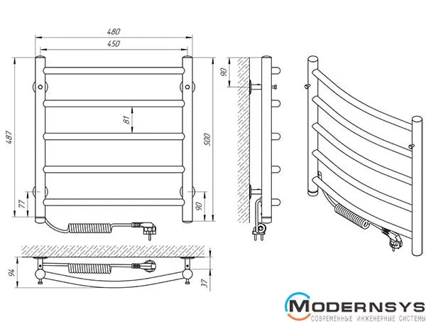 Технічні характеристики: Сушка для рушників електричний Laris (Ларис) Класик П5 450 х 500 ліве підключення S3