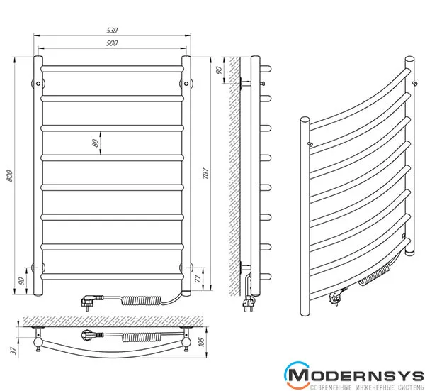 Технічні характеристики: Сушка для рушників електричний Laris (Ларис) Класик П8 500 х 800 праве підключення S3