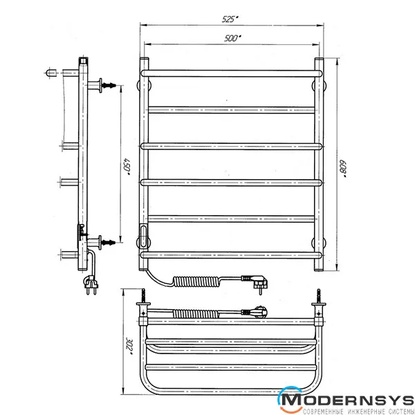 Технічні характеристики: Сушка для рушників електрична Laris (Ларис) Комфорт ЧФ6 500 х 600 з полицею ліве підключення R3