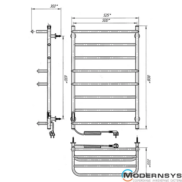 Технічні характеристики: Сушка для рушників електрична Laris (Ларис) Комфорт ЧФ8 500 х 800 з полицею ліве підключення R3