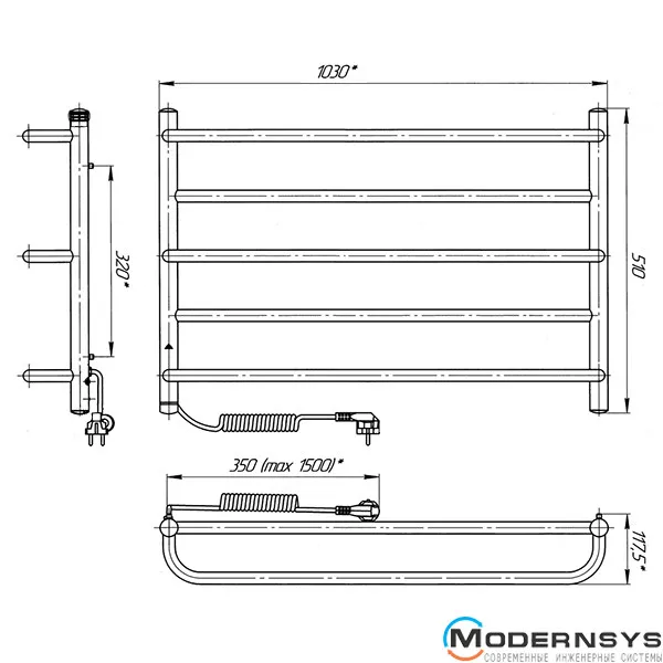 Технічні характеристики: Сушки для рушників електричний Laris (Ларис) Практик П5 1000 х 500 ліве підключення S3