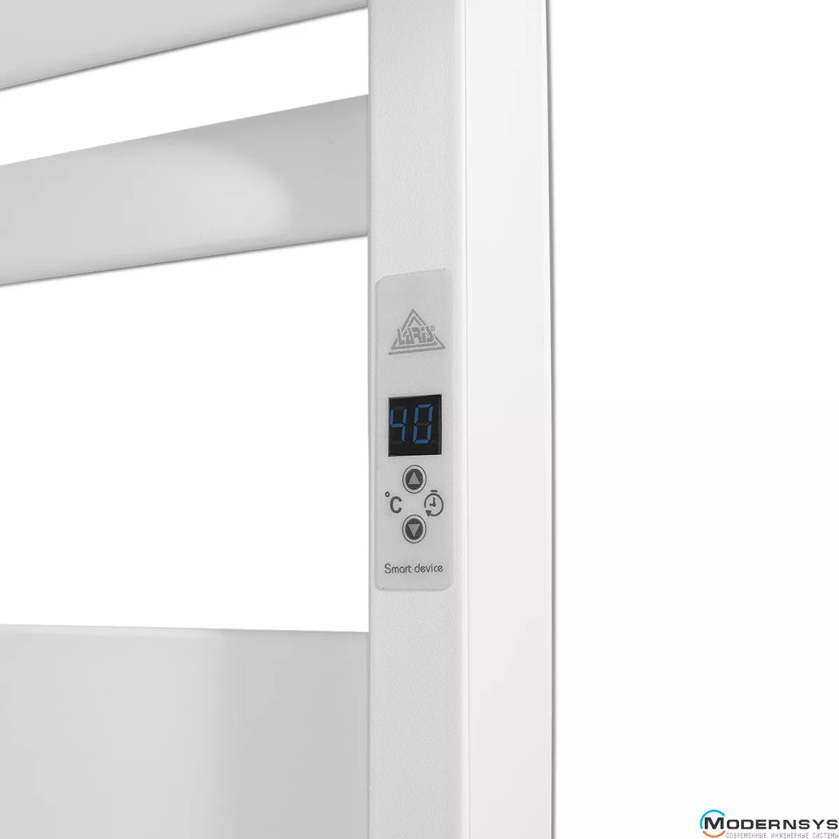 Особливості: керує нагріванням електрорушникосушки мікропроцесорний термоконтролер. Для початку роботи необхідно задати температуру сушки для рушників. Додатково можна вмикати/вимикати нагрівання, програмно знижувати потужність до 50%. Термостат контролює температуру поверхні рушникосушарки, що виключає його перегрів. Витримує напругу 1500 В змінного струму/хвилину. Існує зручна функція блокування кнопок від дітей.