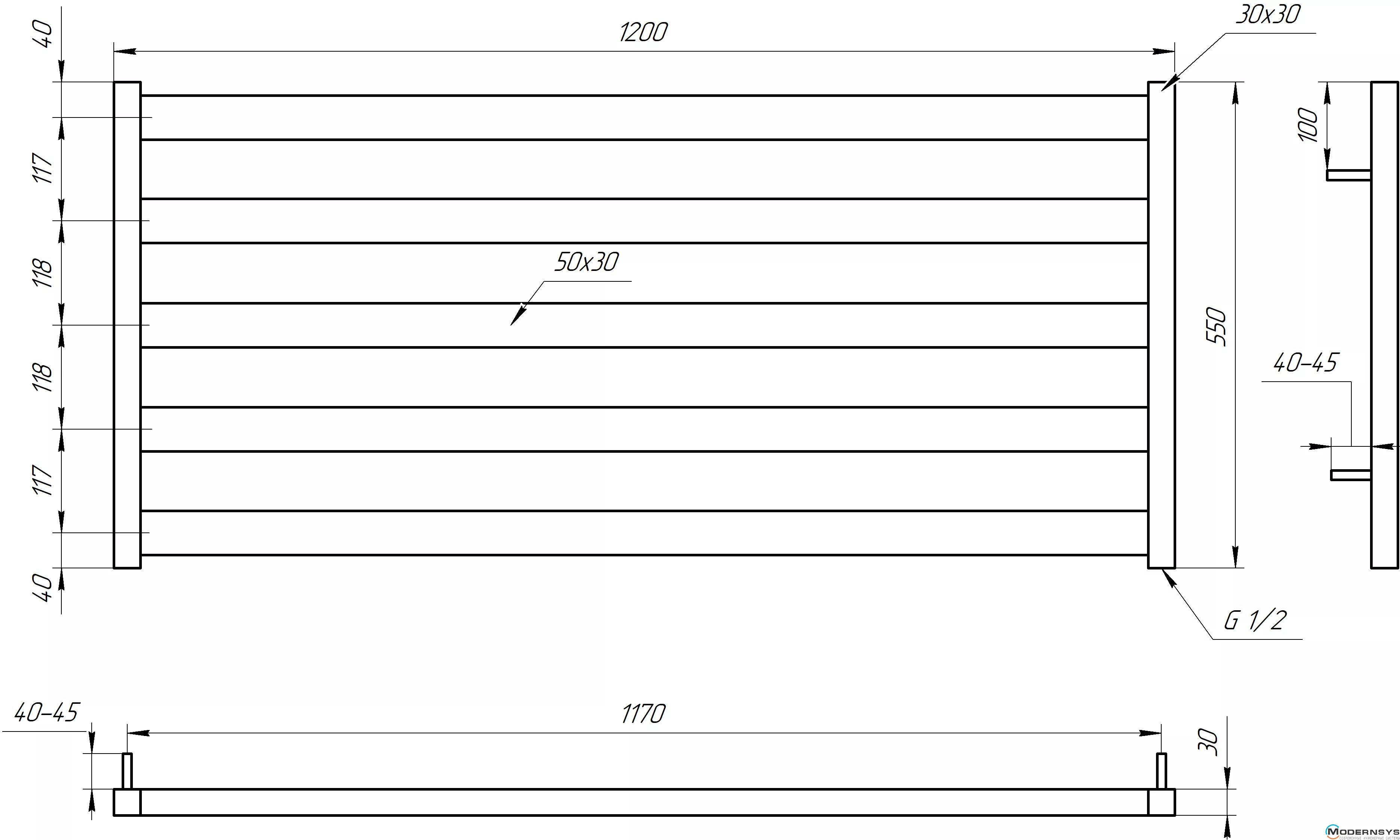 Технічні характеристики: Сушка для рушників Genesis-Aqua (Генезис Аква) BARKER 550x1200 чорний