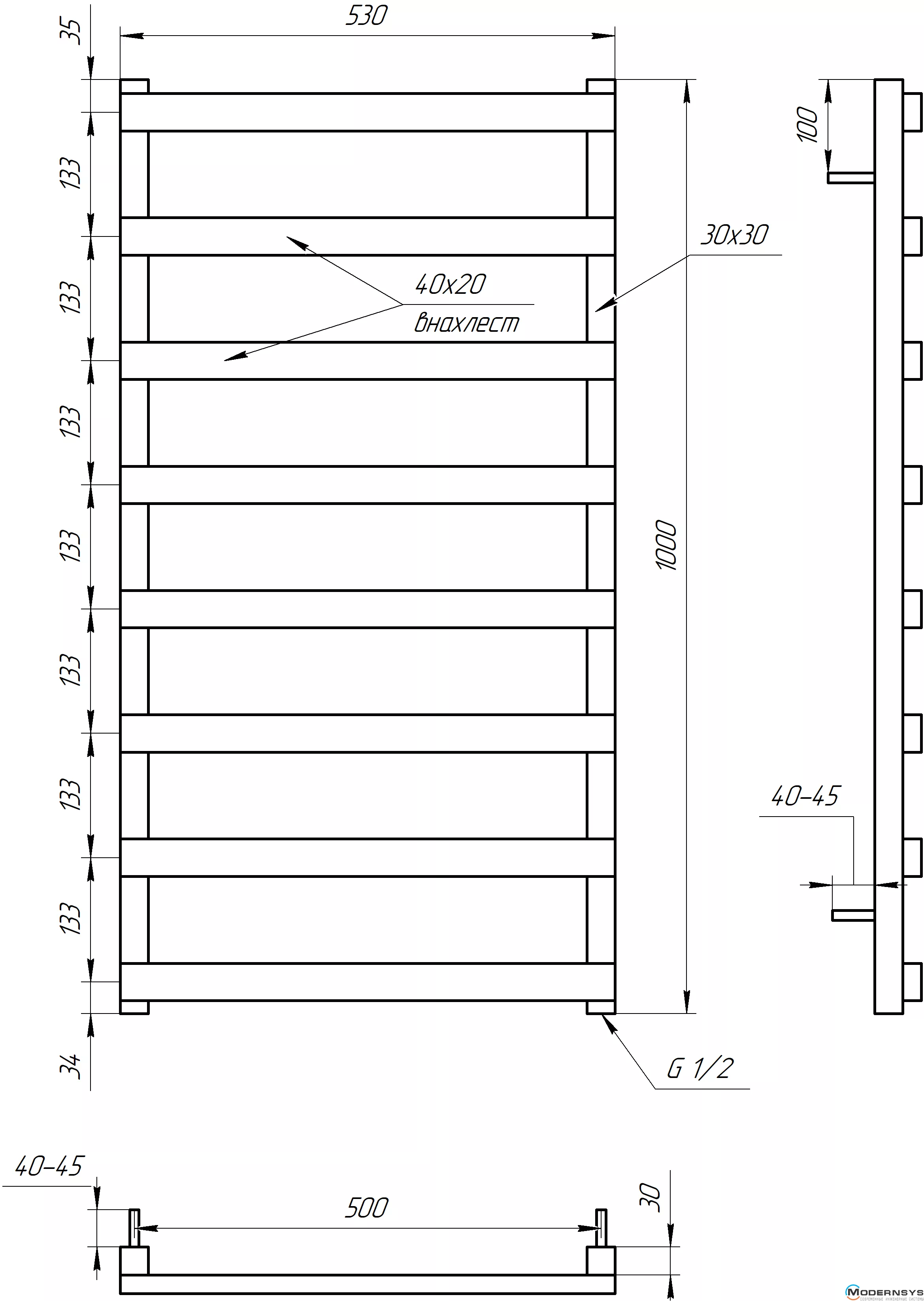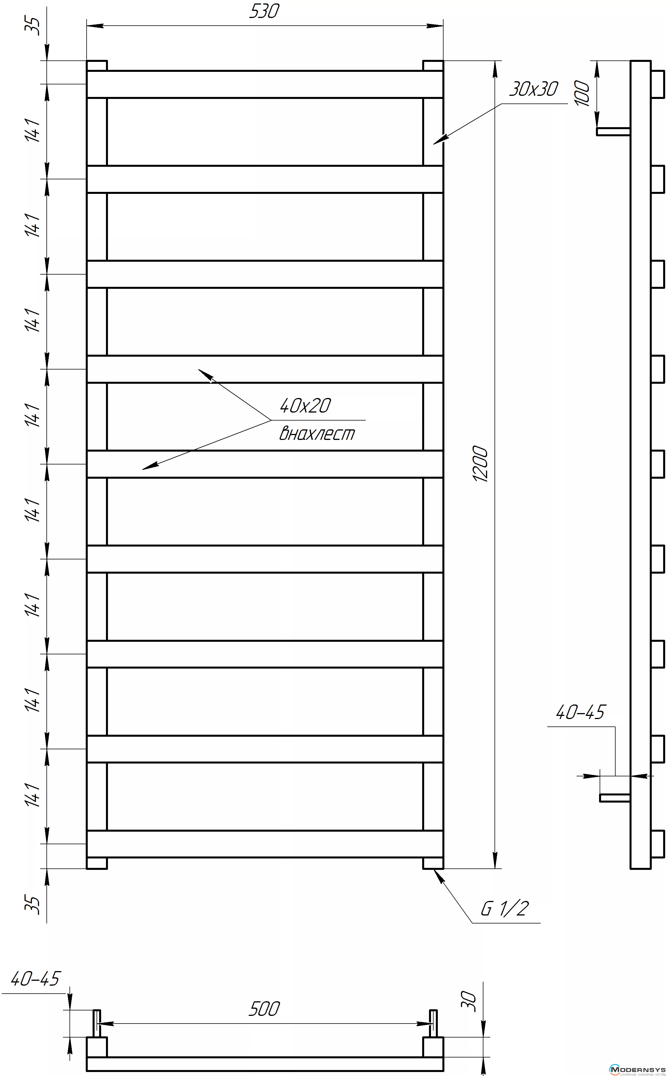 Технічні характеристики: Сушка для рушників Genesis-Aqua (Генезис Аква) BASIS 1200x530 білий
