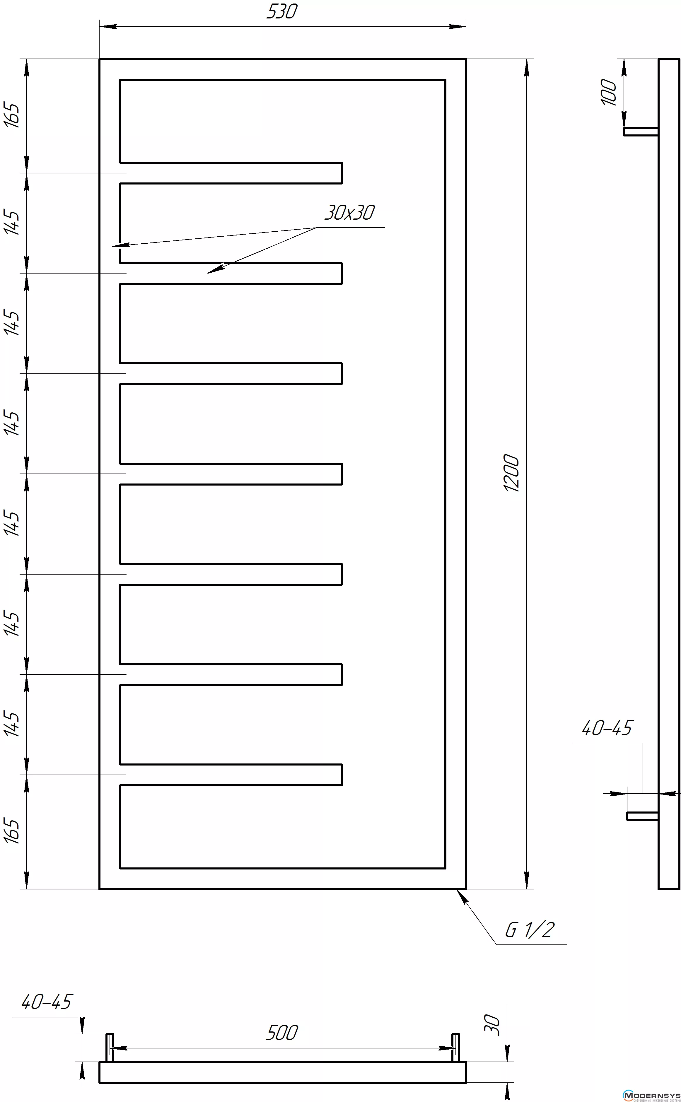 Технічні характеристики: Сушка для рушників Genesis-Aqua (Генезис Аква) COMBO 800x530 білий