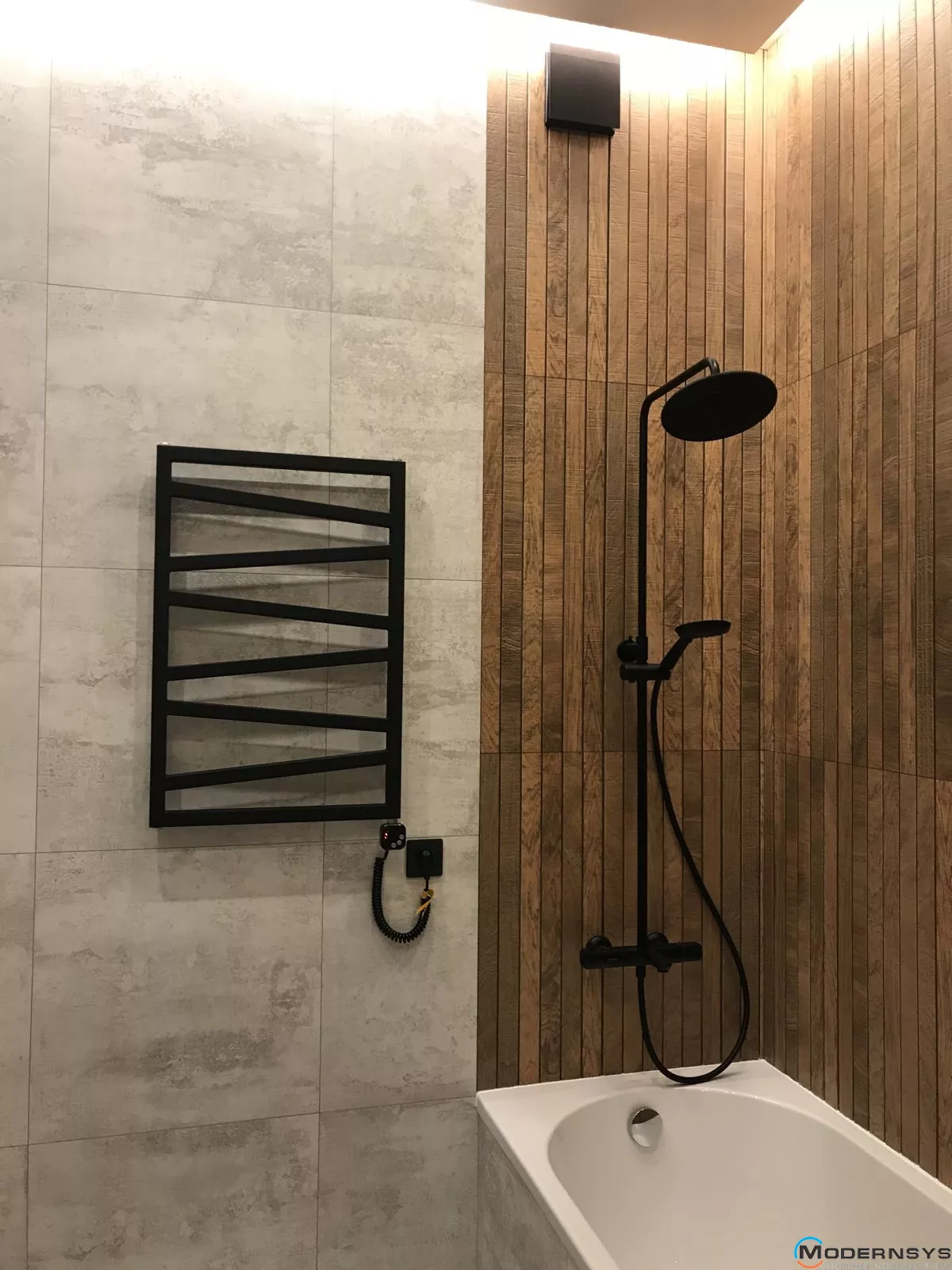 Елементи сушіння Genesis виконані під нахилом для внесення в інтер'єр ванної кімнати незвичайної особливості.
