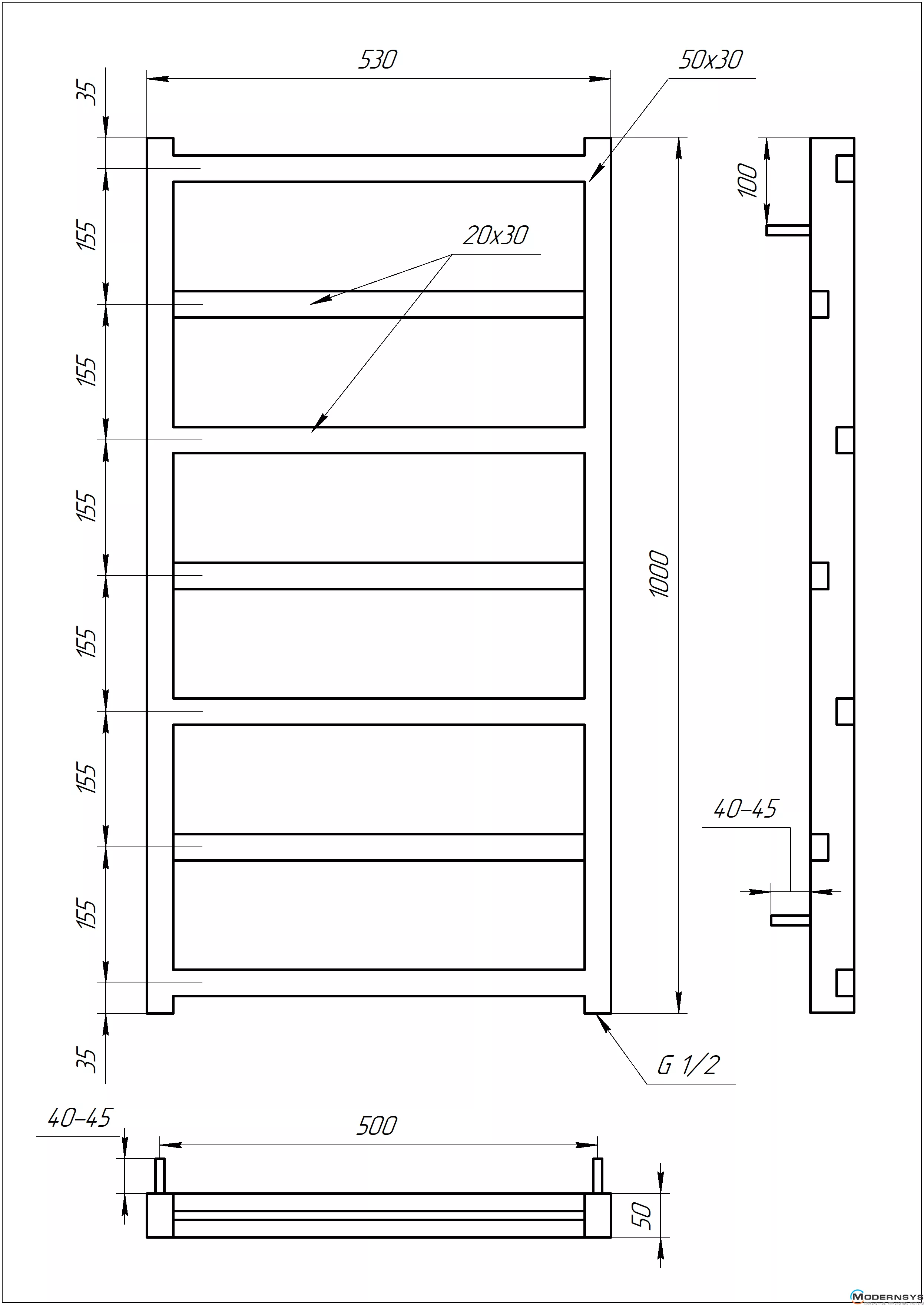 Технічні характеристики: Сушка для рушників Genesis-Aqua (Генезис Аква) LEVEL 1000x530 чорний