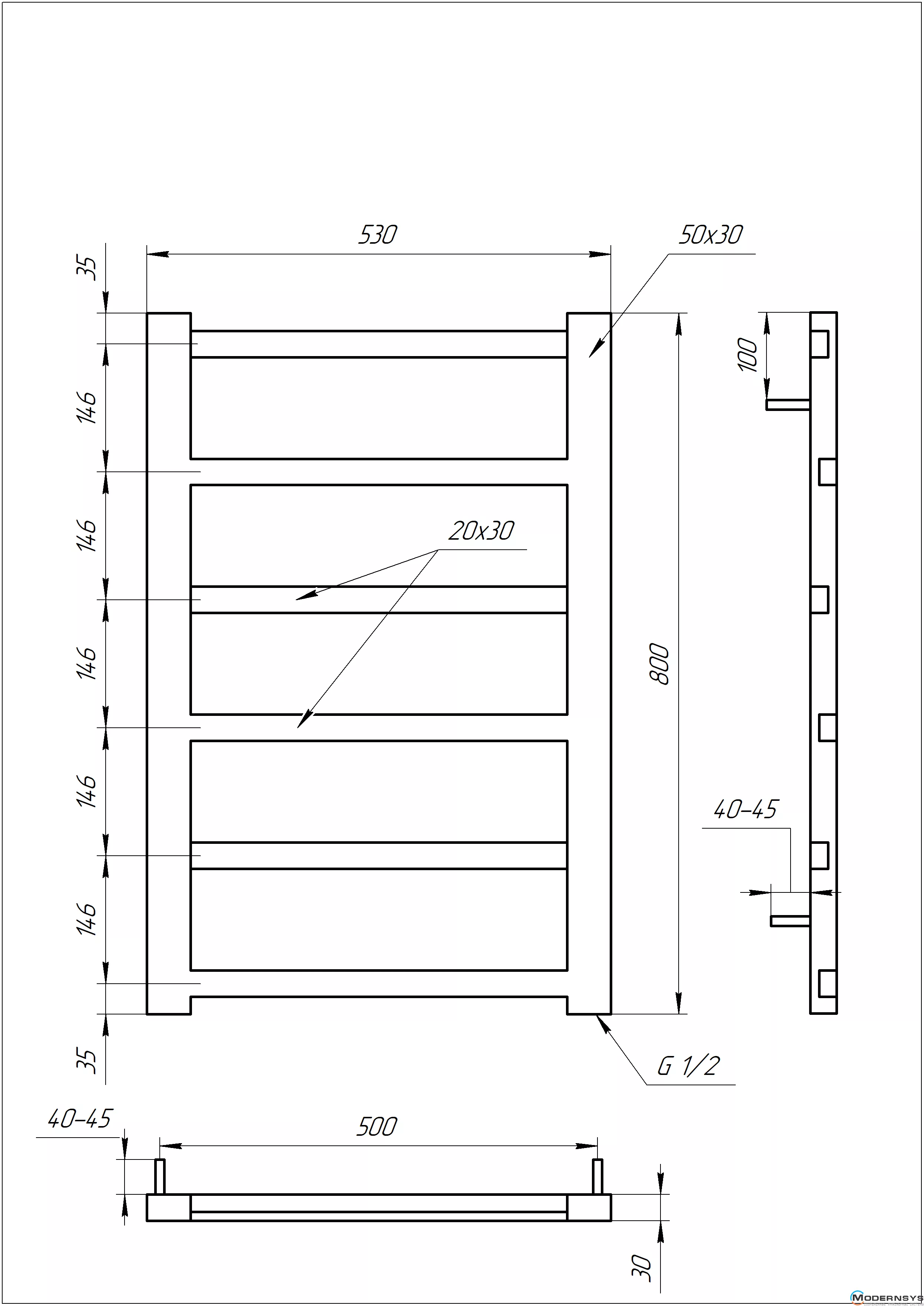 Технічні характеристики: Сушка для рушників Genesis-Aqua (Генезис Аква) LEVEL 1200x530 білий