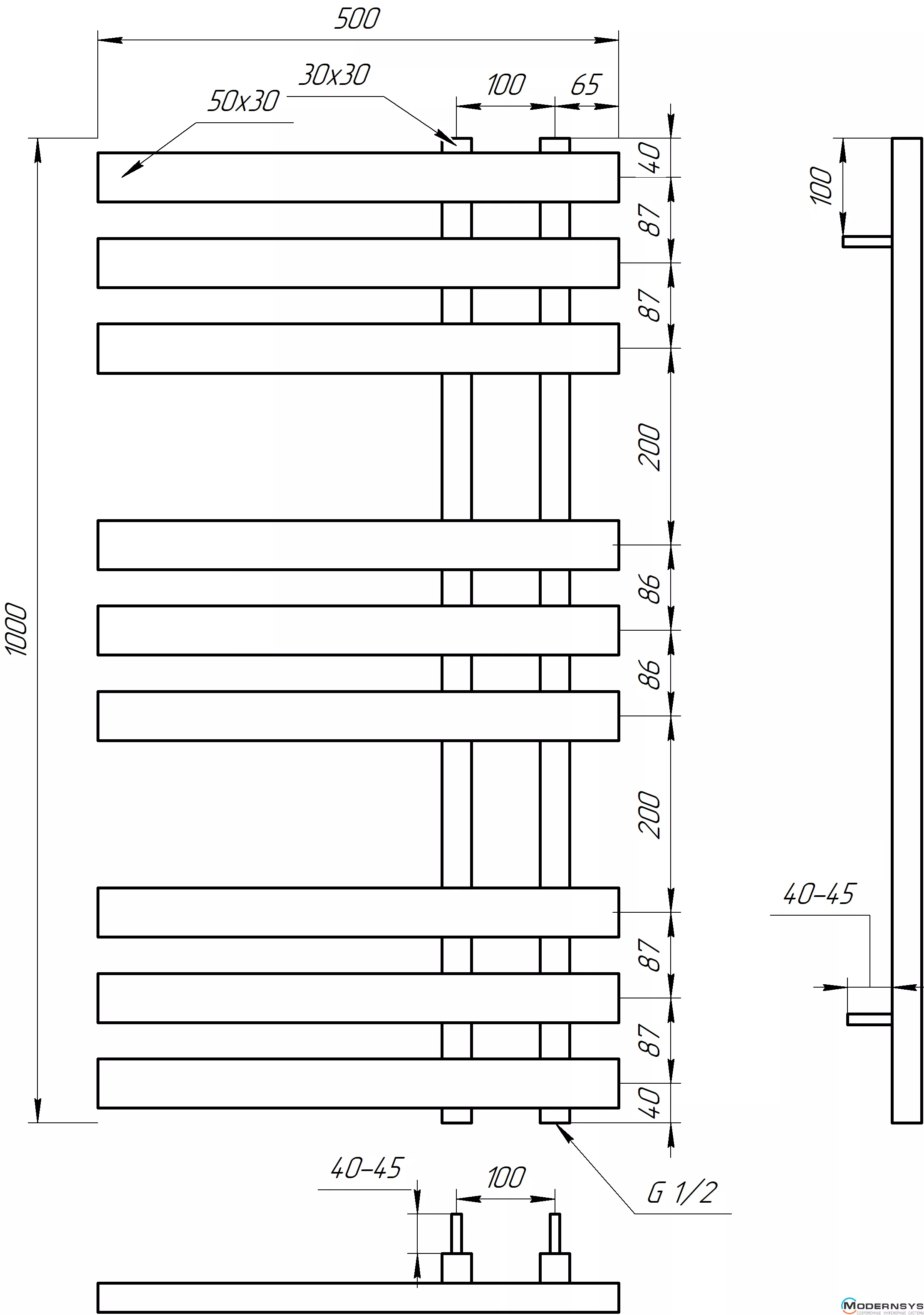 Технічні характеристики: Сушка для рушників Genesis-Aqua (Генезис Аква) MAGNUM 1000x500 білий
