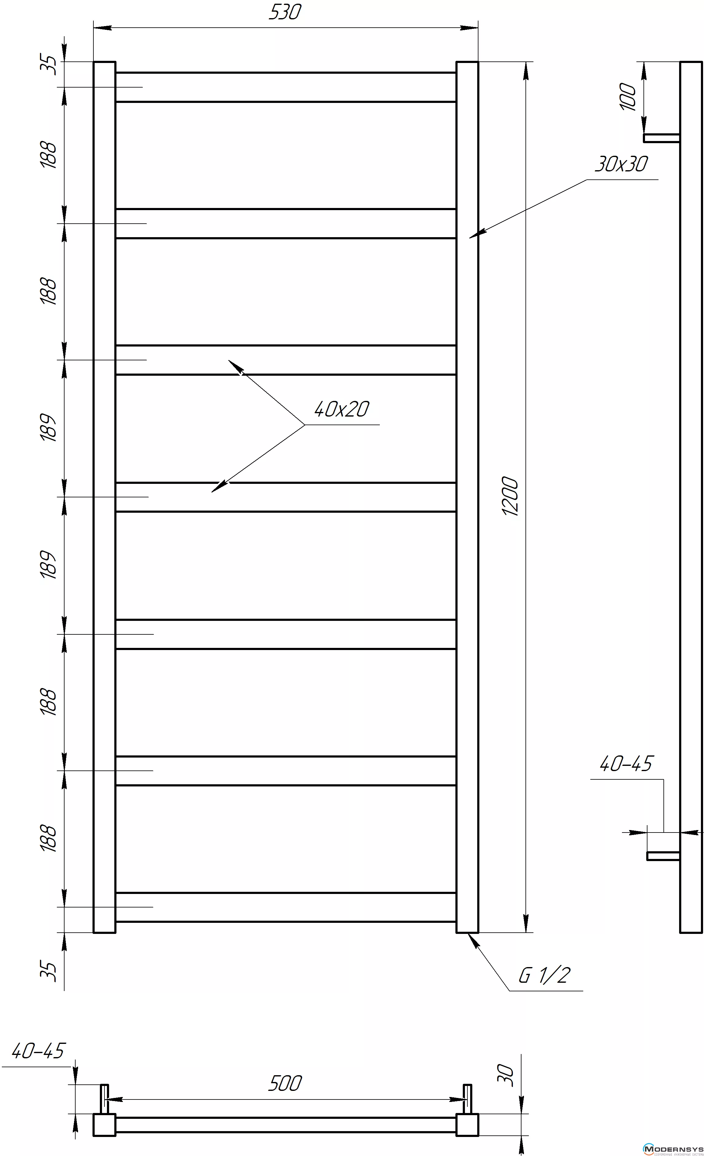 Технічні характеристики: Сушка для рушників Genesis-Aqua (Генезис Аква) MINIMAL 1200x530 графіт