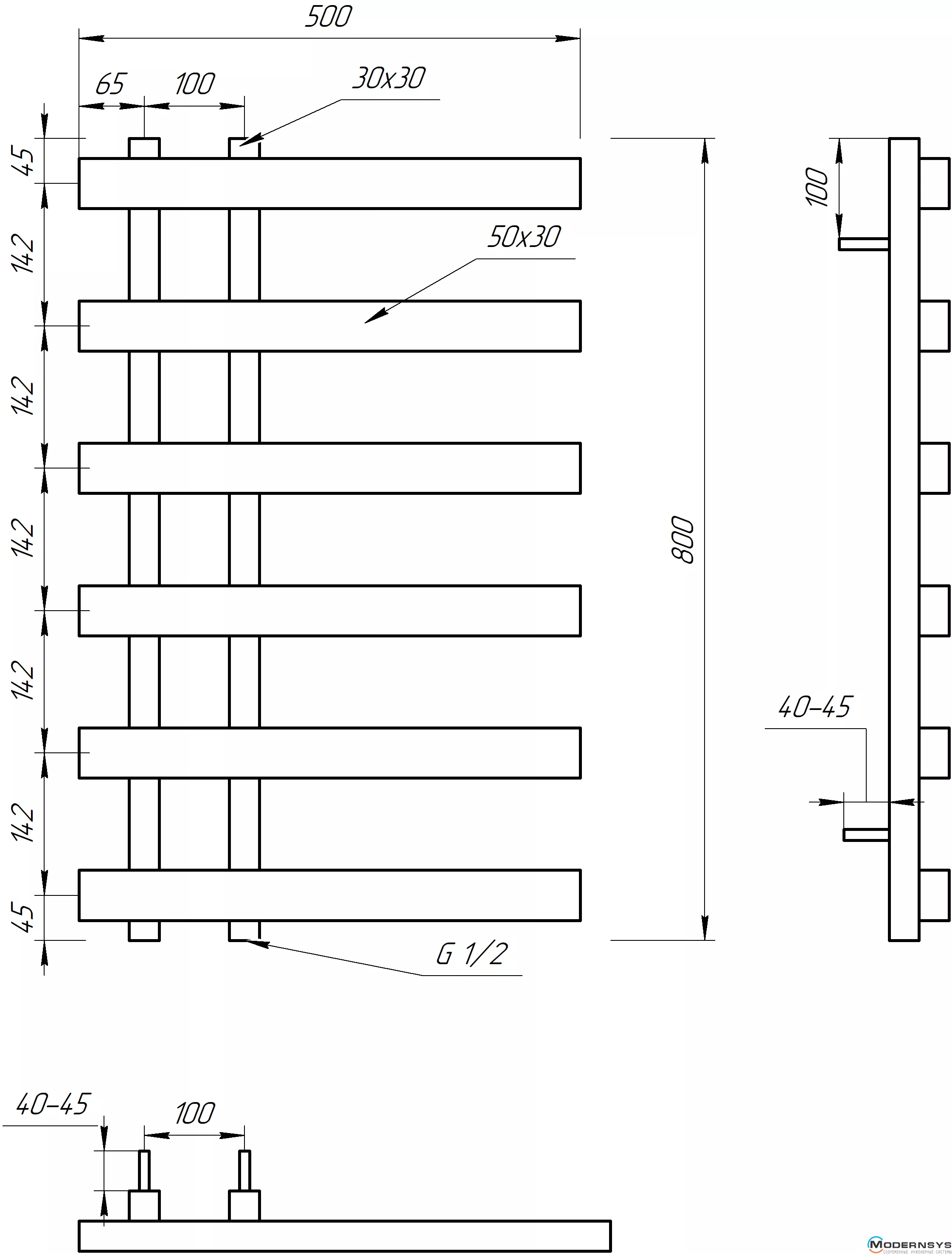 Технічні характеристики: Сушка для рушників Genesis-Aqua (Генезис Аква) SPLIT 1000x500 білий