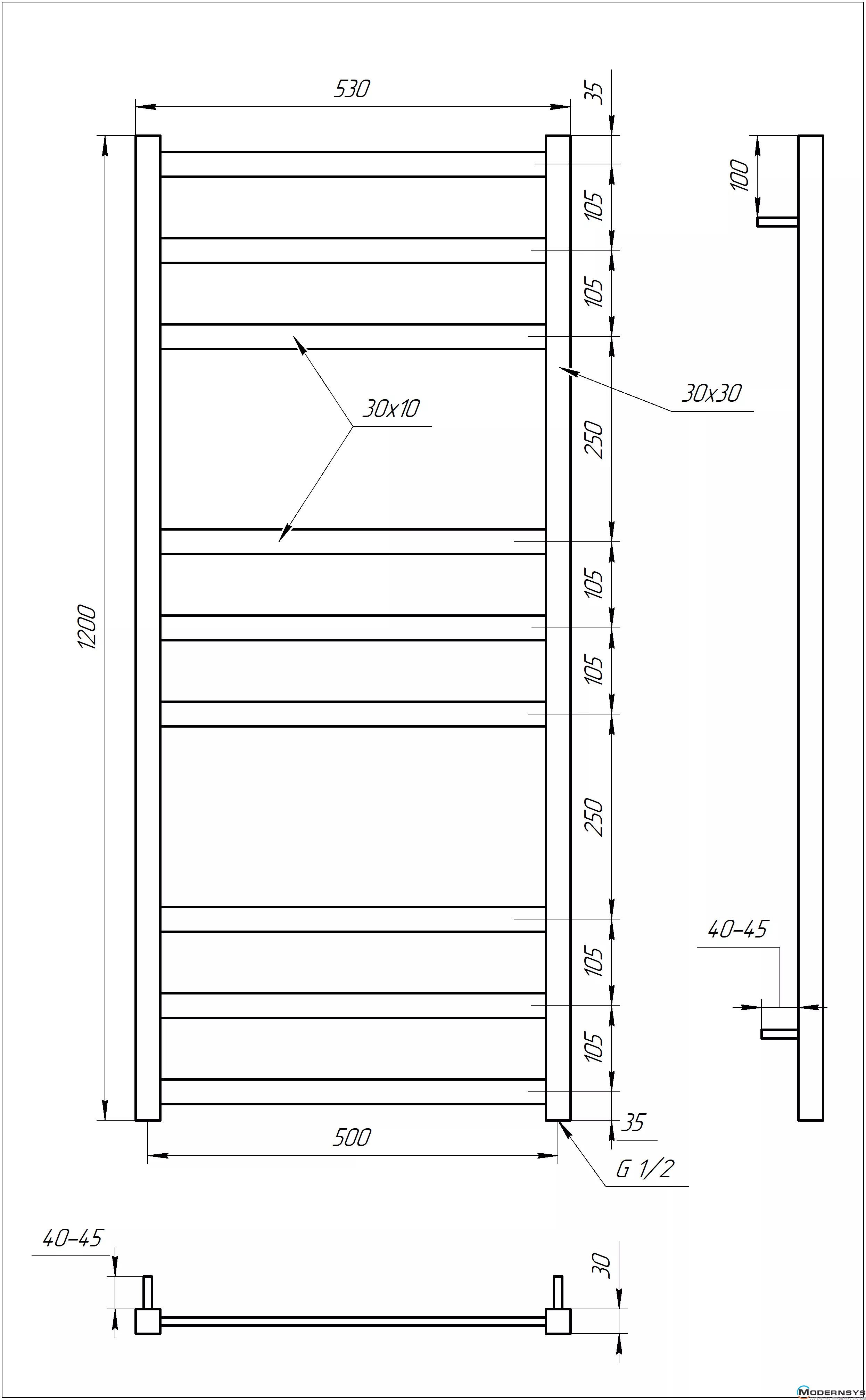 Технічні характеристики: Сушка для рушників Genesis-Aqua (Генезис Аква) TRISTAR 800x530 білий
