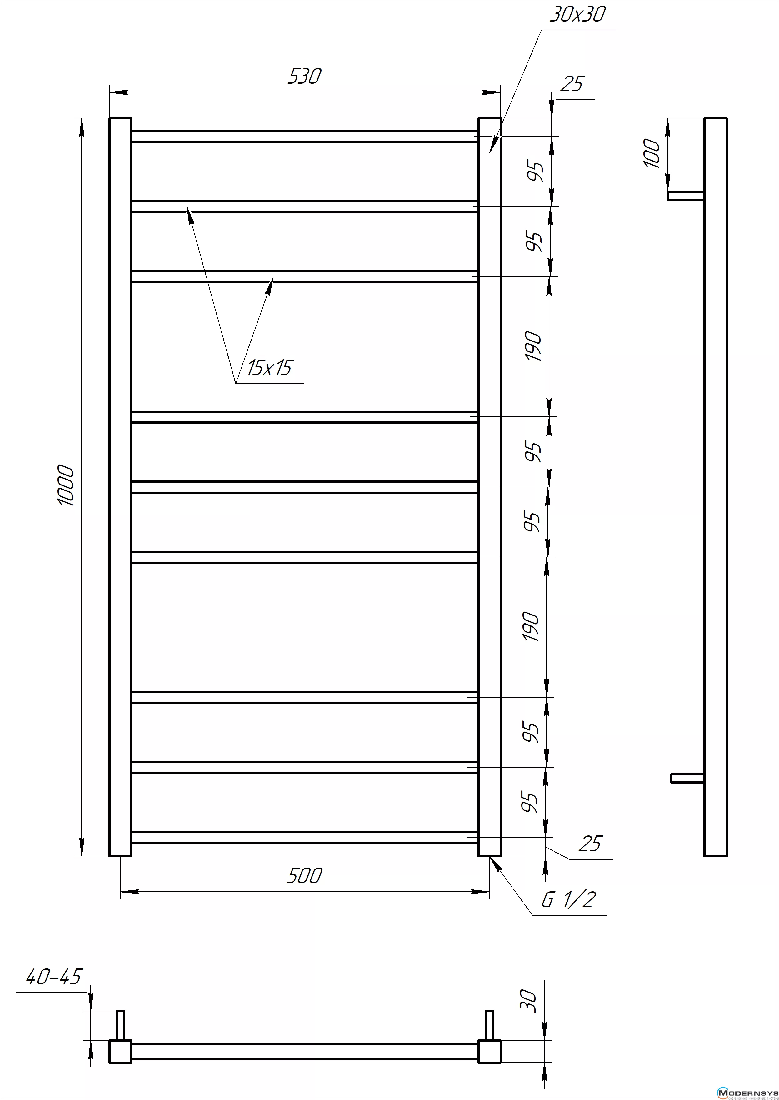 Технічні характеристики: Сушка для рушників Genesis-Aqua (Генезис Аква) TRISTAR SQUARE 1000x530 графіт