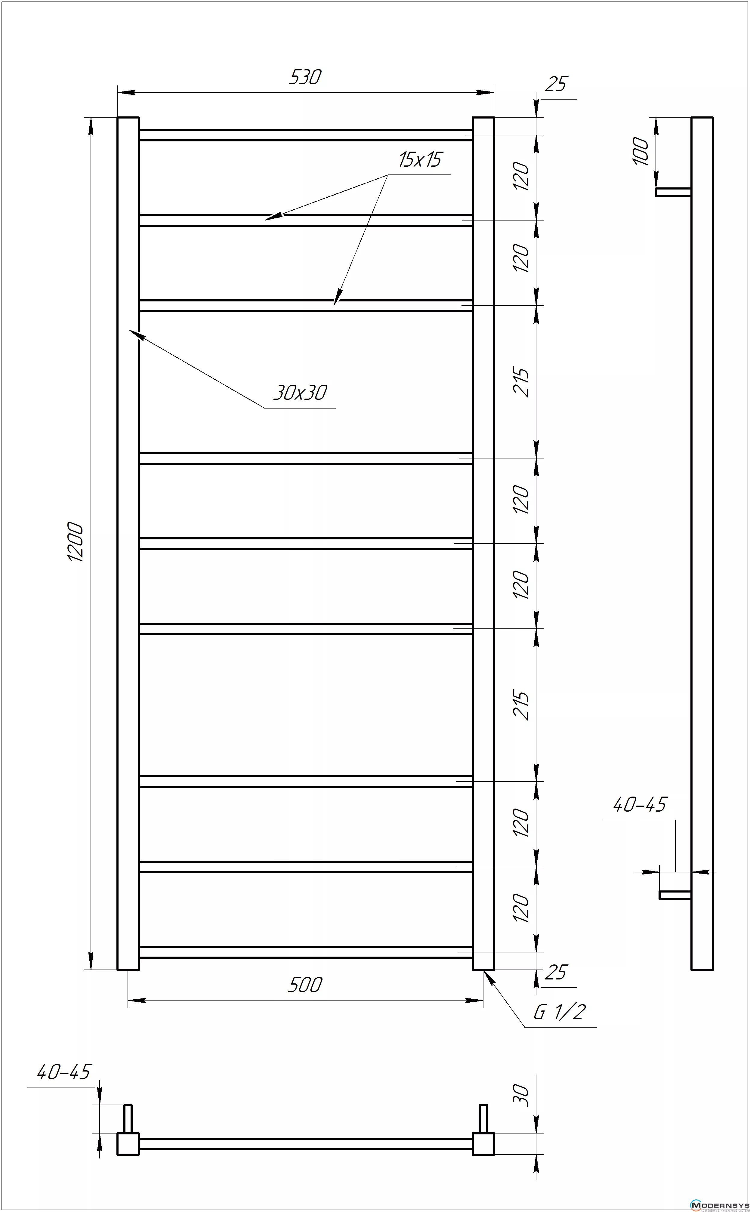 Технічні характеристики: Сушка для рушників Genesis-Aqua (Генезис Аква) TRISTAR SQUARE 1200x530 чорний