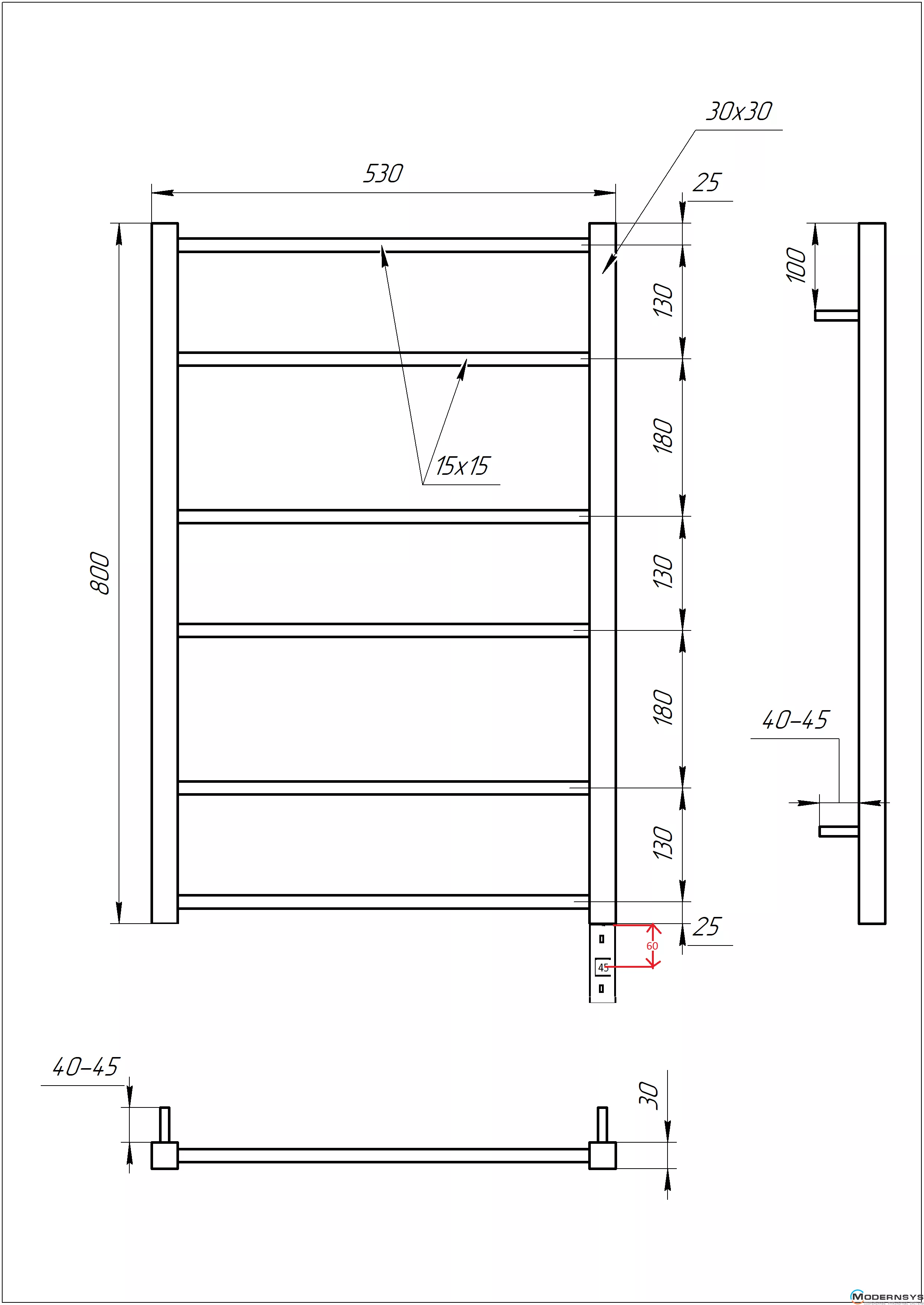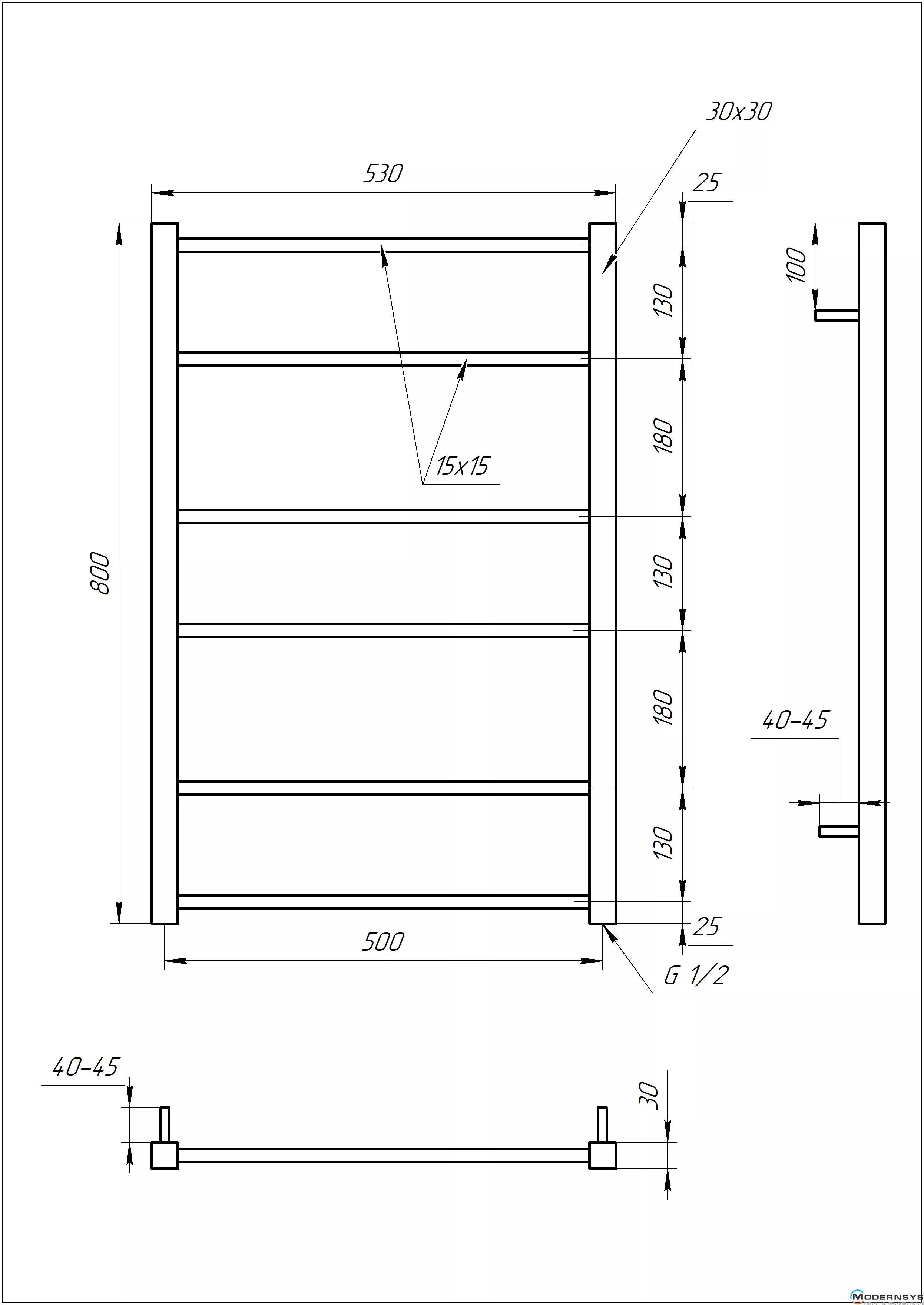 Технічні характеристики: Сушка для рушників Genesis-Aqua (Генезис Аква) TRISTAR SQUARE 800x530 чорний