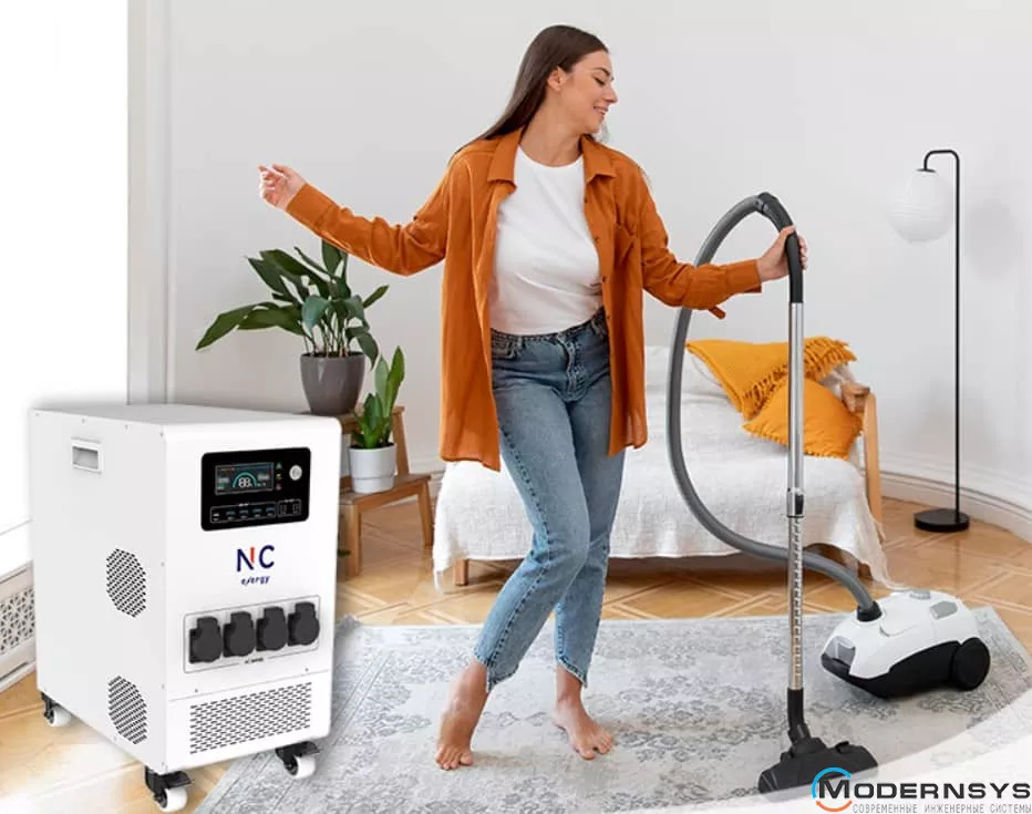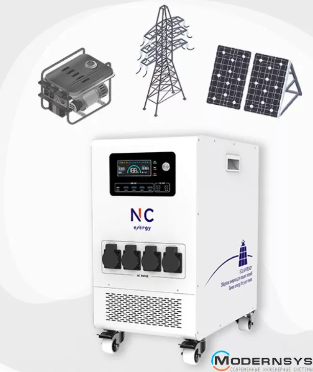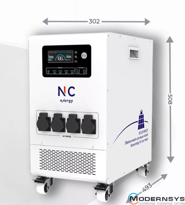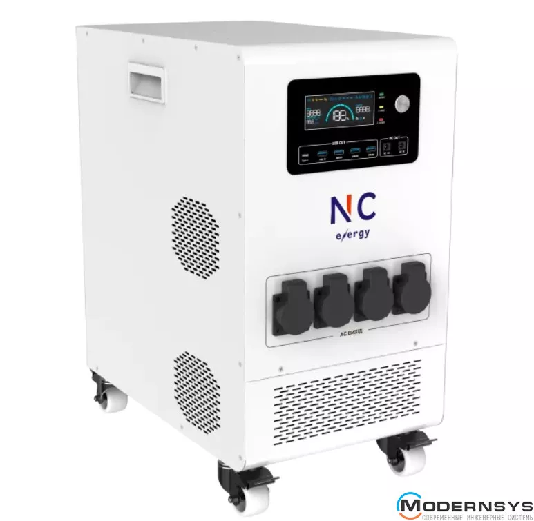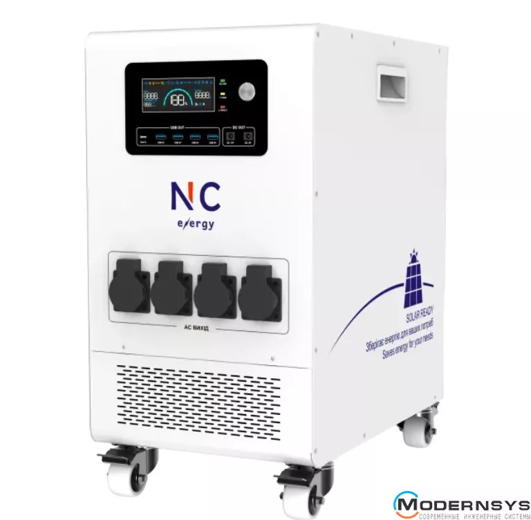 Портативний накопичувач енергії NC energy NCE5P5U48ua має "гібридний" тип використання. З одного боку, вбудовані інтерфейси дозволяють застосовувати обладнання для підключення окремої побутової техніки безпосередньо без спеціального монтажу. Для зручного переміщення передбачені коліщатка. З іншого боку, пристрій має можливість підключення до мережі для живлення окремої кімнати або її частини.